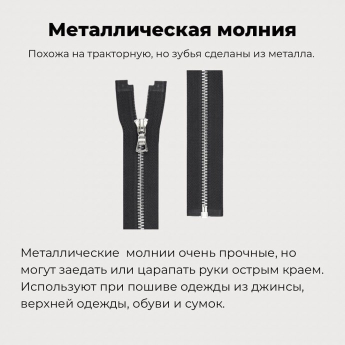 - Металлические — долговечны, надежны, применяются для изделий из плотной и тяжелой ткани.