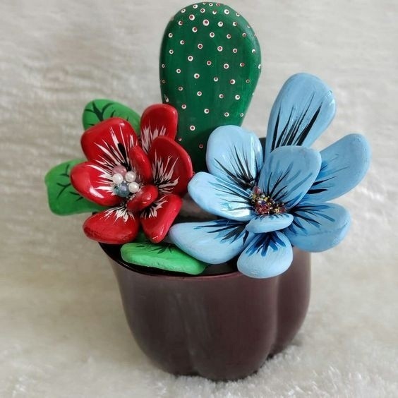 Для создания некоторых растений расписанные камни можно даже склеивать вместе.