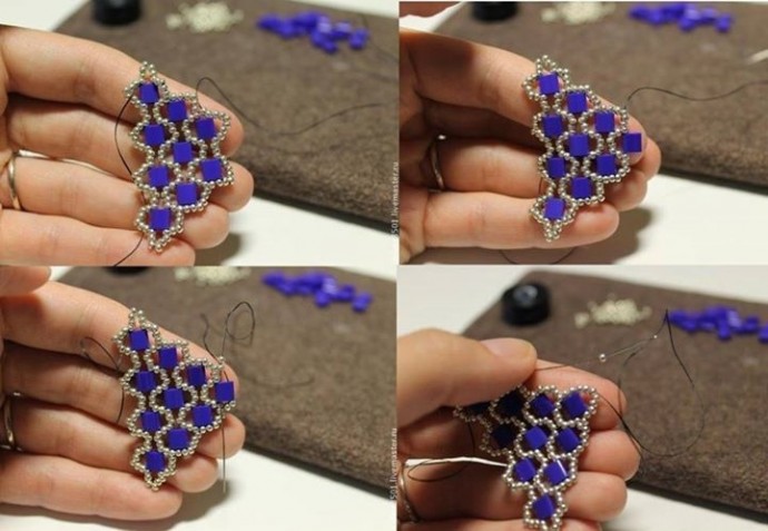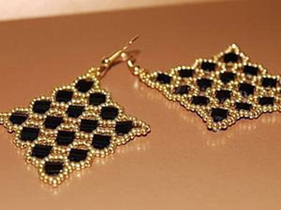 Серьги с ромбами из бисера