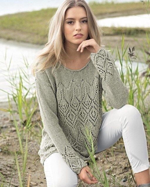 Крупные ажурные ромбы придают индивидуальность свободному удлиненному джемперу из благородной пряжи с добавлением шерсти яка, но можно использовать любую аналогичную.