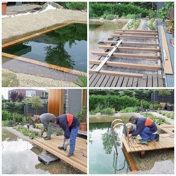 15. Дощатый настил уложен вдоль всего фасада дома. Перед ним короб скиммера