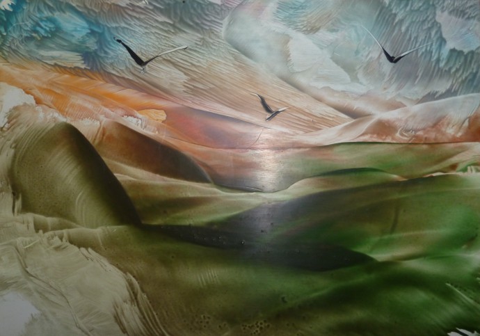 Энкаустика - в прямом смысле зажигательная техника рисования горячим воском, при которой вместо кисти используется утюг и паяльник. Выполненные подобным образом работы отличаются цветовой насыщенностью, контрастностью, выраженной текстурой и высокой стойкостью к воздействию влажности и света. Изображения можно создавать на холсте, бумаге, картоне, фанере, мраморе, доске и других материалах.
