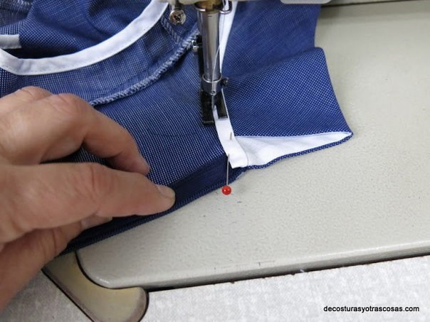 Очень оригинальный воротничок создается с декоративным контрастным отворотом, направленным вверх.