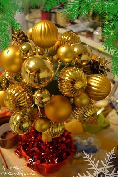Топиарий из ёлочных шариков