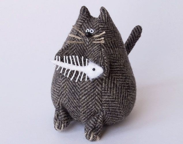 Такого интерьерного котенка можно сшить не только из искусственного меха, но и из любой одноцветной ткани.