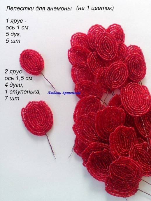 Синие и красные цветы из бисера