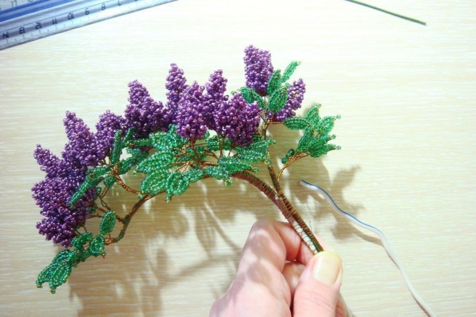 Самая красивая сирень получается, когда делается не однотонной, а смешиваются три оттенка сиреневого для создания цветов на кисти.