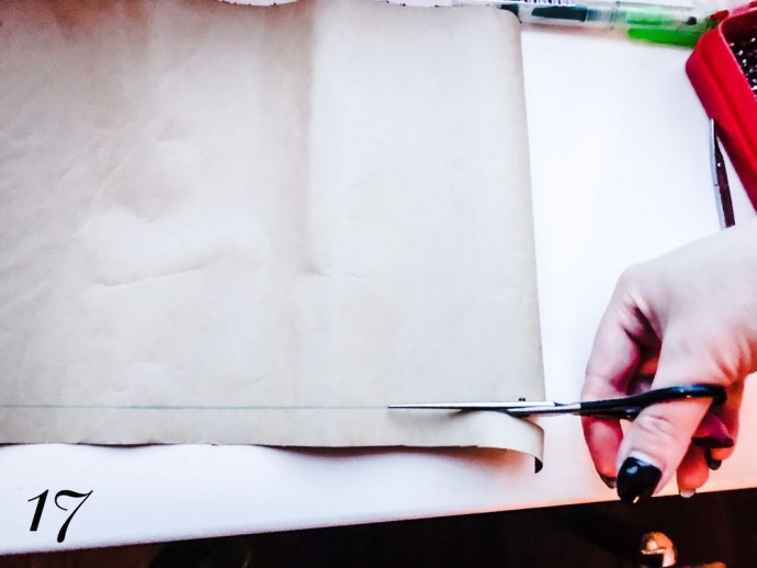 17. Переходим к отделке задника ободка, я взяла алькантару самоклеящуюся (искусственная замша), вырезаем по ширине ободка, прибавив 3 мм.