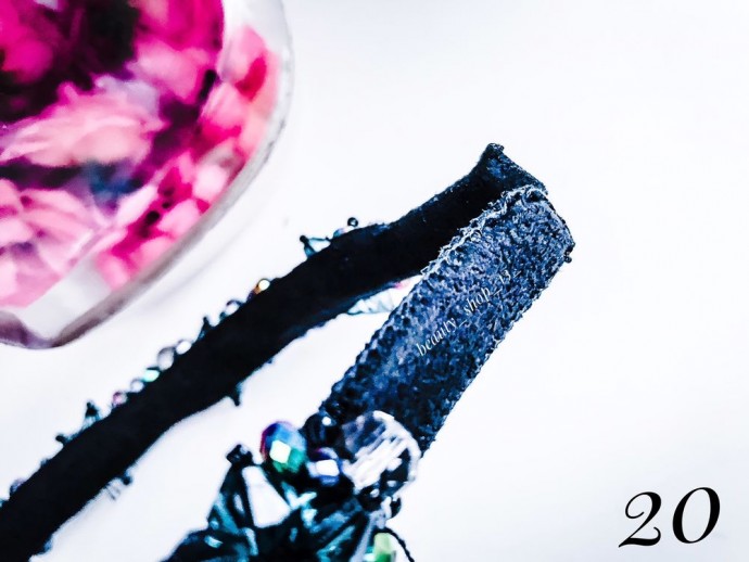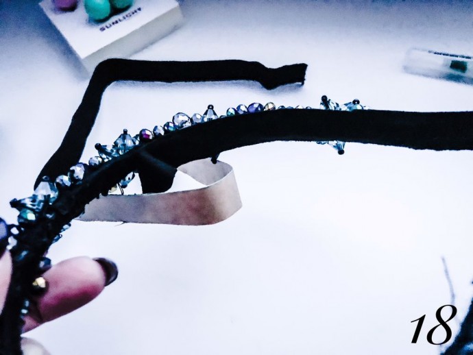 18. Для большей уверенности в скреплении я промазала тонким слоем задник ободка клеем момент кристалл, далее приклеиваем замшу.