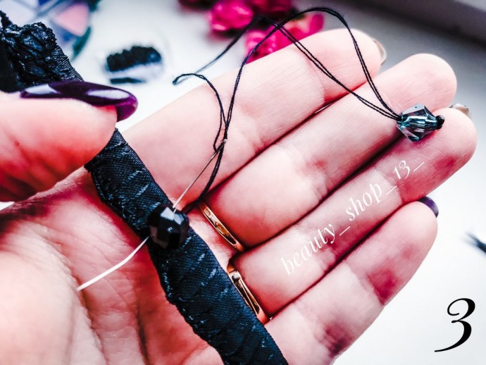 11. Берем рондели 4 мм и пришиваем как на фото, по бокам.