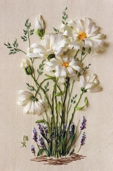 Идеи цветочных картин из лент для творческого вдохновен