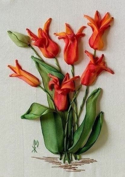 Ленточки в руках опытеой вышивальщицы буквально оживают.