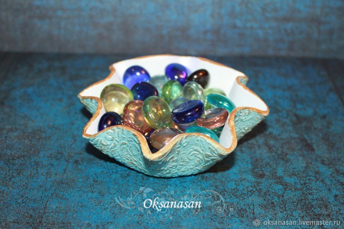 Внутреннюю часть вазочки можно покрыть краской при желании, а на всю ее поверхность нанести лак для полимерной глины.