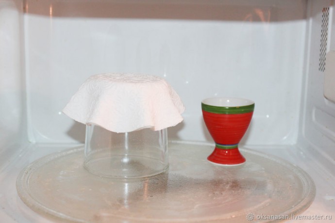 Некоторые виды глины можно запекать в микроволновой печи. После этого изделие можно сверлить, шлифовать, красить и лакировать. С этим материалом легко работать, поэтому он идеально подходит для лепки с детьми. Посмотрите, как быстро и просто сделать вазочку при помощи стакана или похожей емкости.
