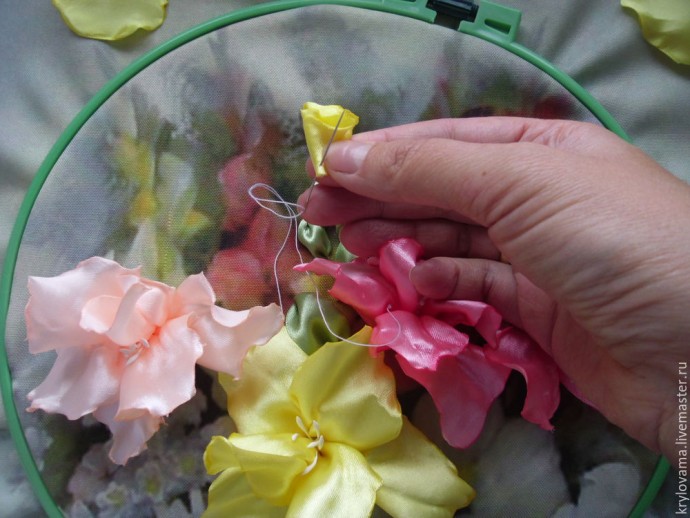 Потом между тремя нижними вшиваю следующие три лепестка