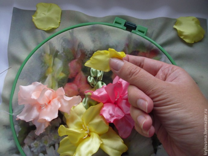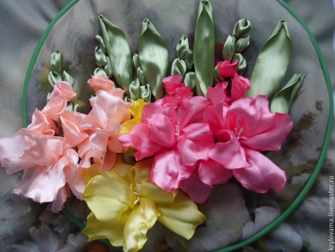 Гладиолусы вышитые лентами