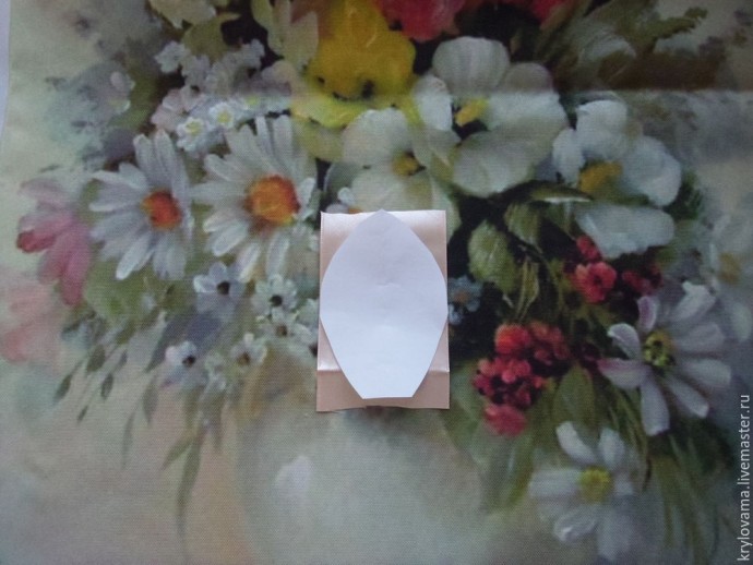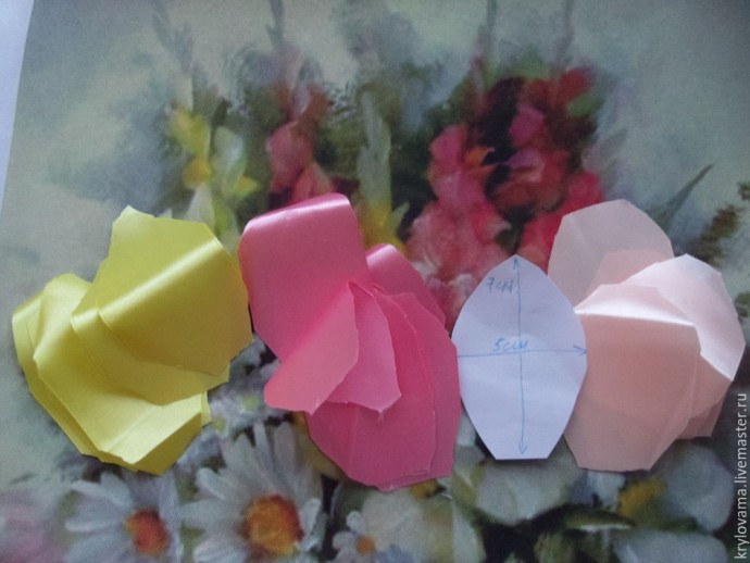 Вырезаем выкройку для лепестка из бумаги, длиной 7см и шириной 5 см.