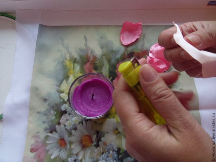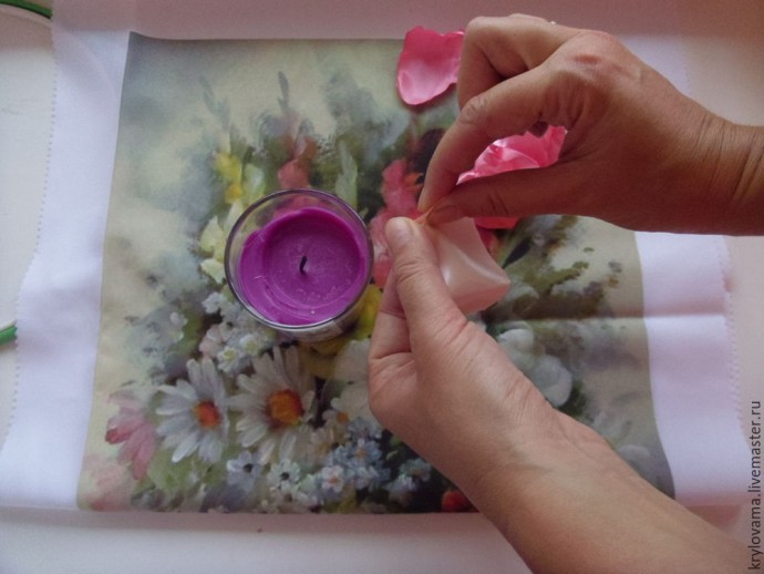 Берем свечу и подпаливаем край у каждого лепестка.