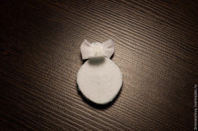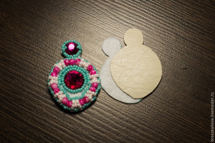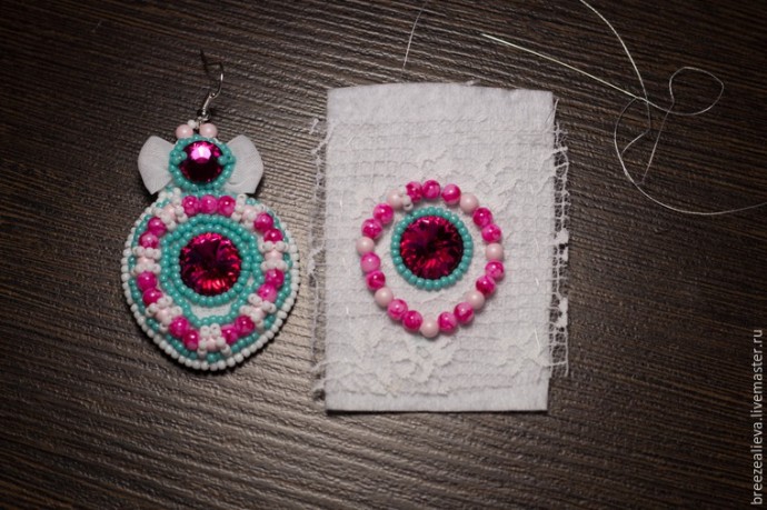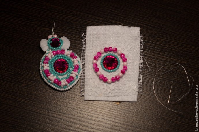Бирюзовым бисером обшиваем бусины с внутренней стороны.