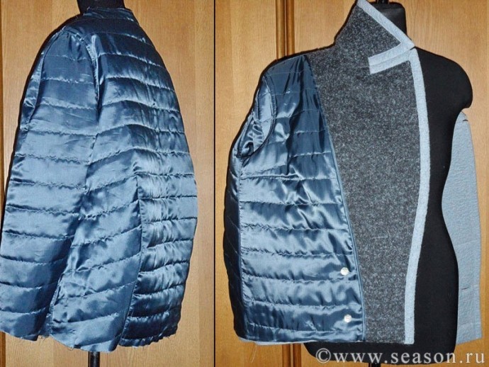 После того, как все детали простёганы, осноравливаем их по выкройке, сшиваем и пришиваем стеганую подкладку (в нашем примере) к изделию. При помощи полосы скотча можно стегать не только подкладку, но и верх изделия. Рисунок может быть любым. В зависимости от ширины скотча и вашей фантазии, можно чередовать узкие и широкие полосы, стегать горизонтально, вертикально или под углом.