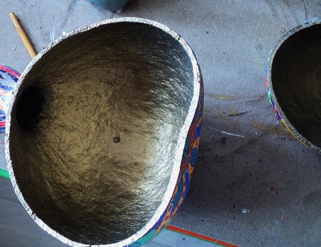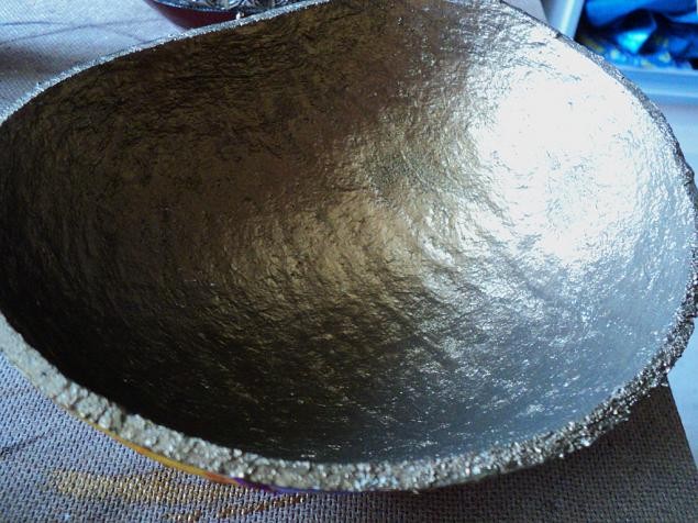 Изнутри красим тыковку бронзовым акрилом (тоже покрываем два раза)