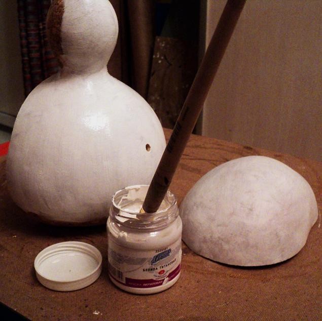 Красим тыковку белым акрилом. Надо прокрыть два раза.