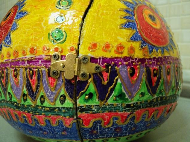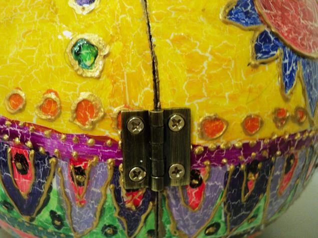 Соединяем разрезанные части Тыквы металлической фурнитурой (Петля и замочек)