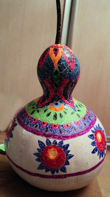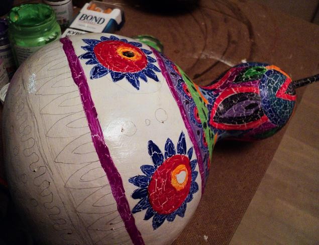 Когда кракелюрный лак высохнет,- начинаем наносить орнамент акриловыми красками.