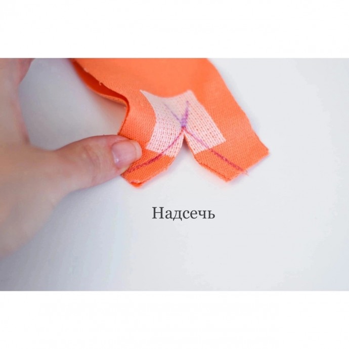 На углу поставьте рассечку ножницами, не доходя до строчки 1-2 мм.