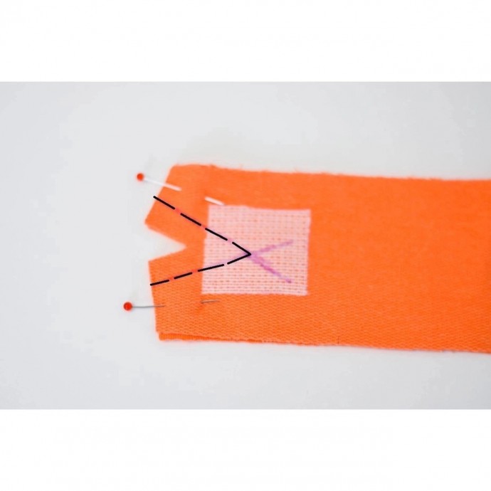 На углу стежки должны точно пересечься в одной точке, при этом строчка не должна выходить за границу припуска.
