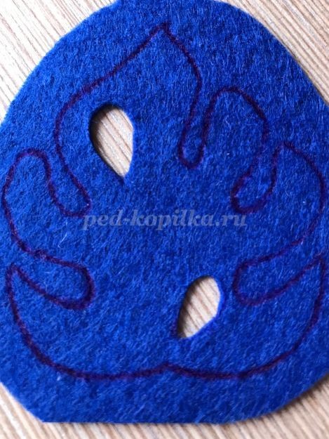 7. Вырезаем заготовку. Срезаем фетр очень близко к пришитой канители, но очень аккуратно, чтобы не задеть стежки пришивания.
