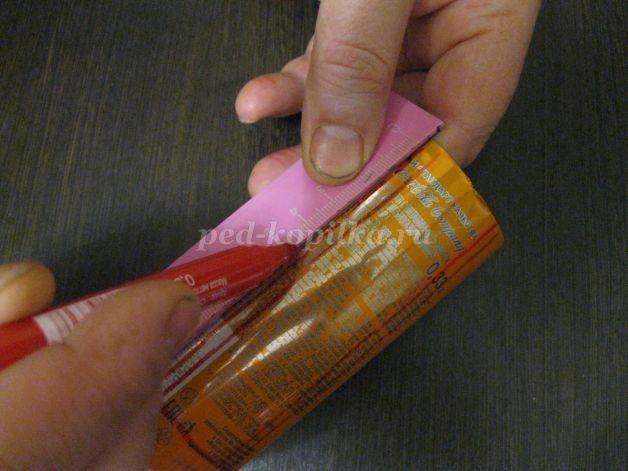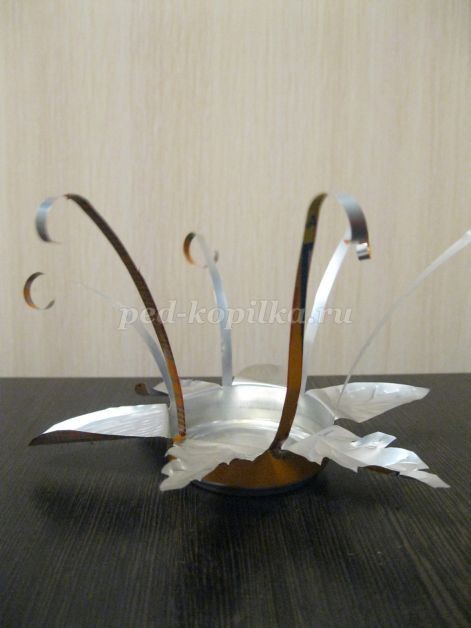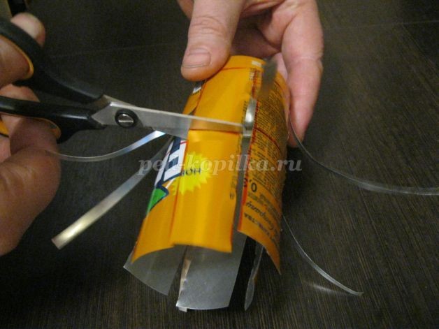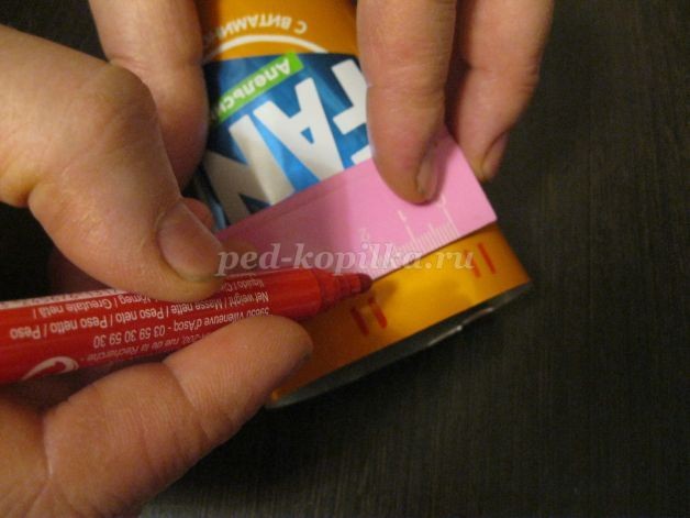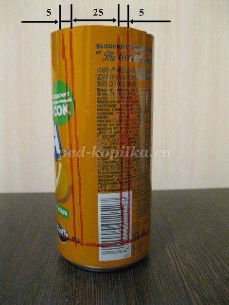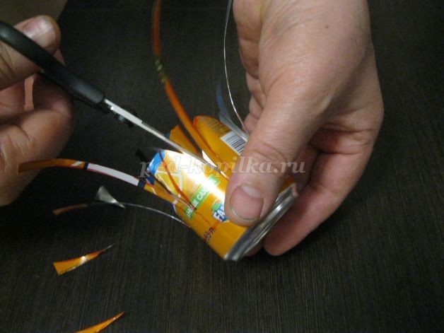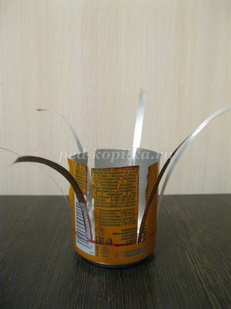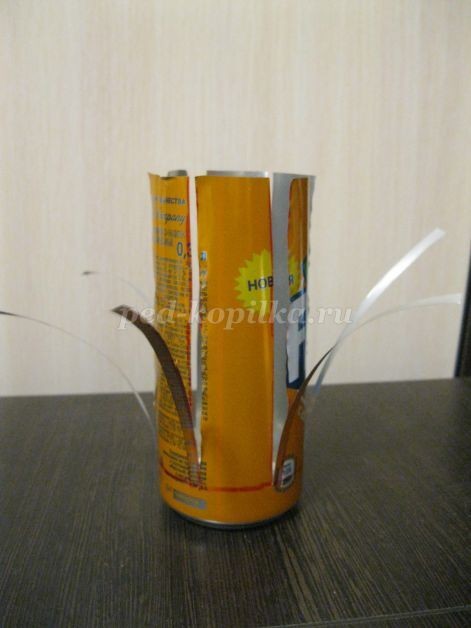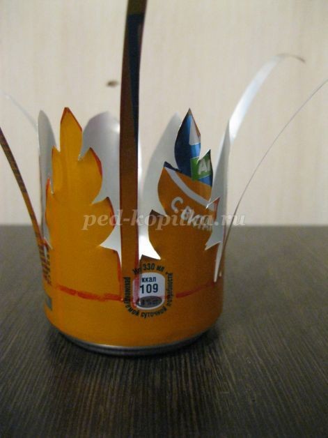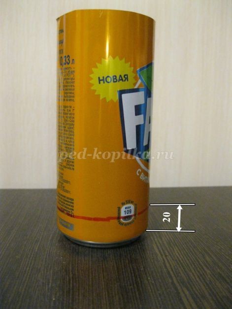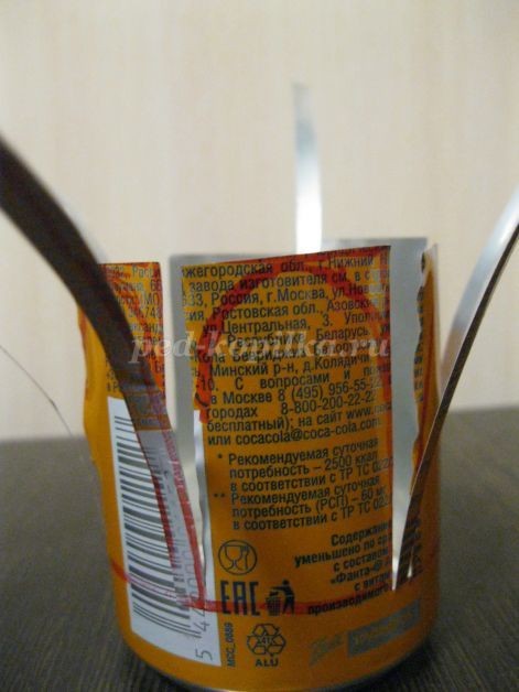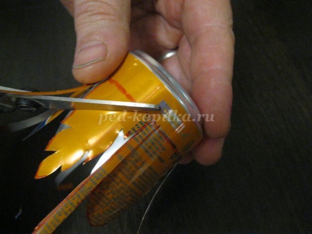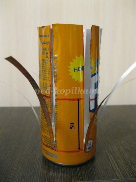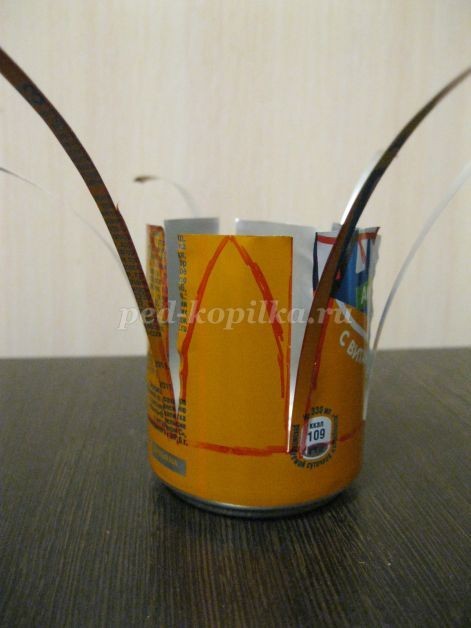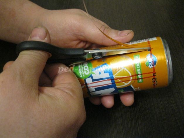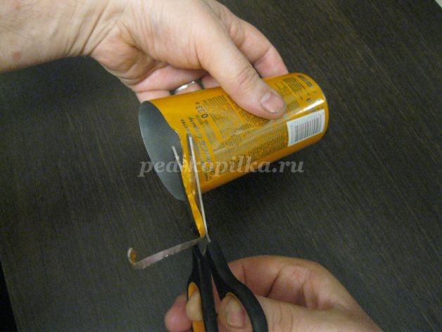 1. Аккуратно канцелярским ножом отрежьте верхнюю часть металлической банки.