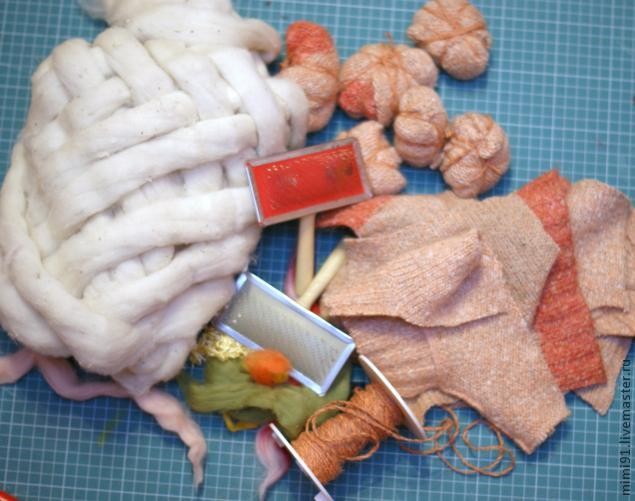Шерсть для валяния, иголка для валяния, поролоновая губка, старые капроновые колготки, шерстяная пряжа, старые шерстяные вещи, войлочные обрезки.