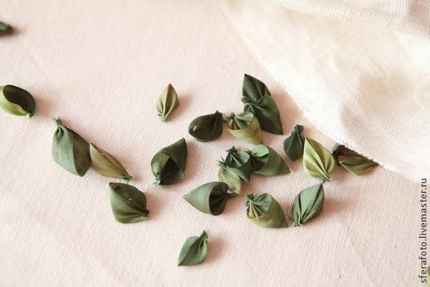 Прошиваем ленту для каждого цветка (размер готового цветка 2 см в диаметре, для него берем кусочек ленты- 20см )