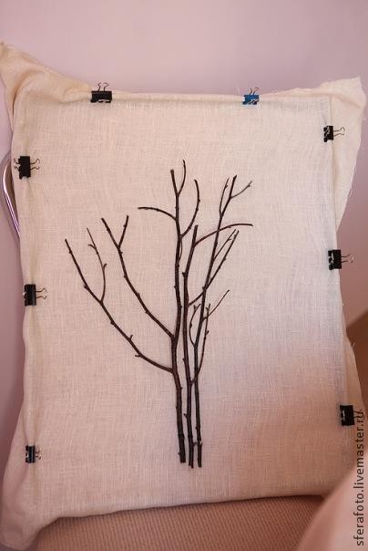 Начинаем пришивать веточки березы, чтоб получилось деревце