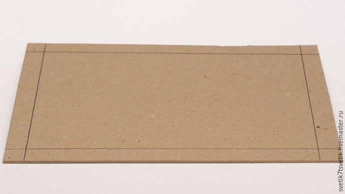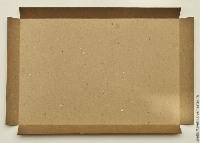Теперь нужно сделать заготовку, на которую будет натягиваться моя работа. Измеряем внутренний размер получившейся коробки и вырезаем по этим размерам лист из толстого картона.