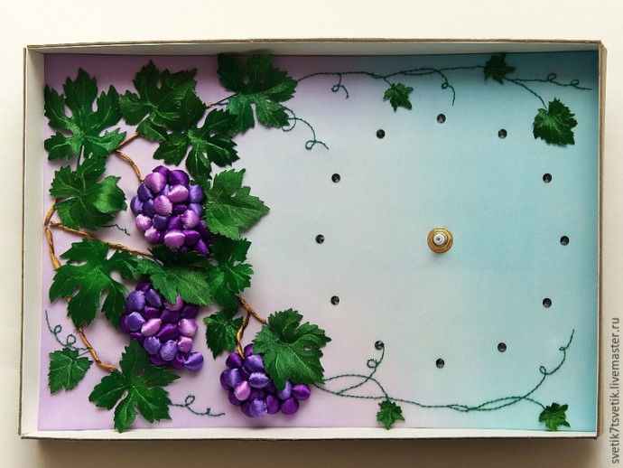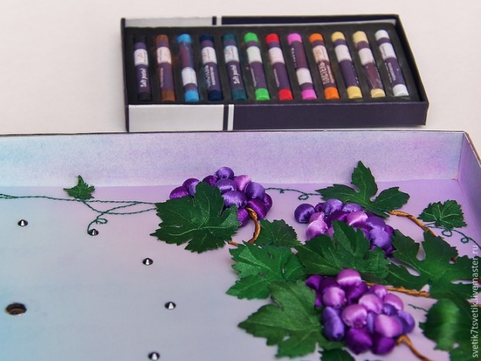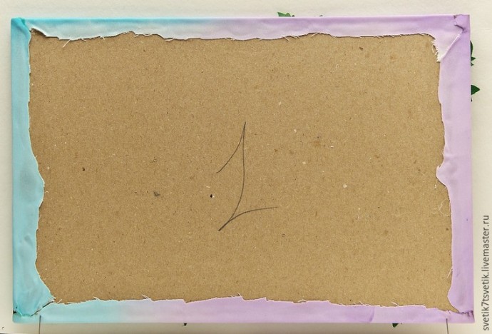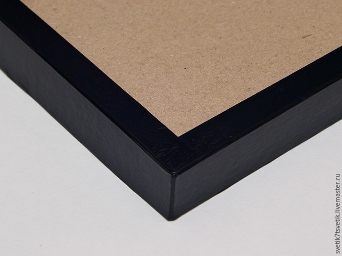 Когда клей высохнет, вставляем картон с натянутой работой в короб.