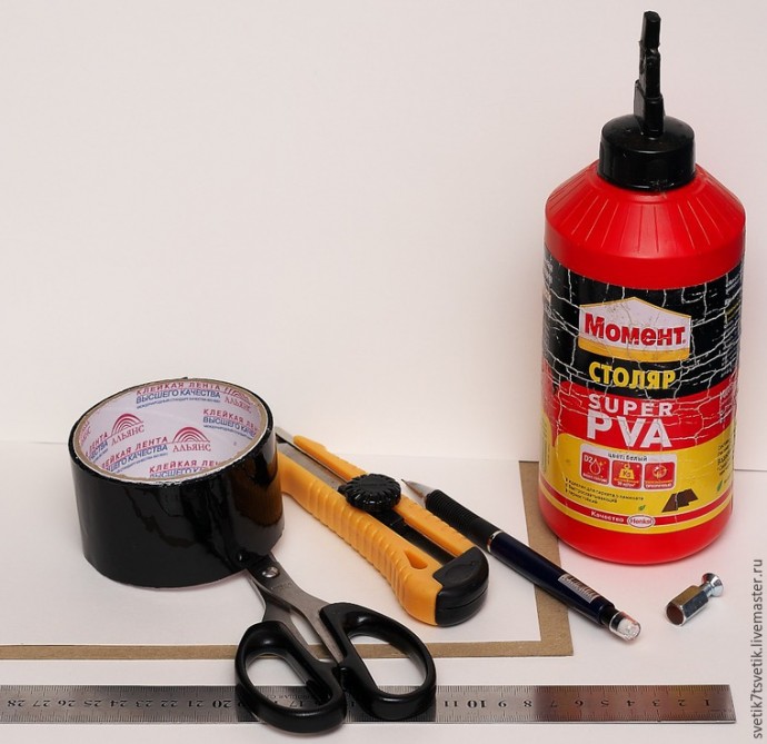 Далее необходимо приобрести большой лист толстого картона, обычно я беру 1,75 - 2 мм толщиной. Его продают в больших канцелярских супермаркетах. И белый картон, примерно, 0,5 мм толщиной.