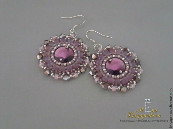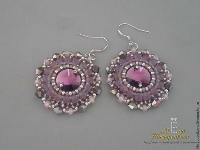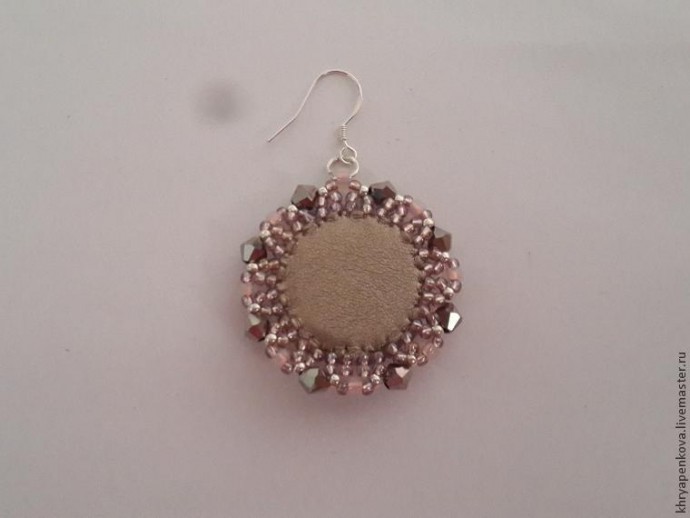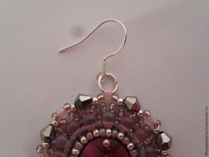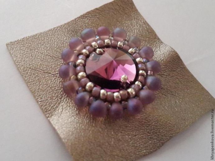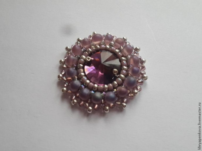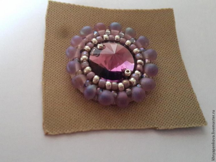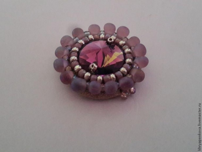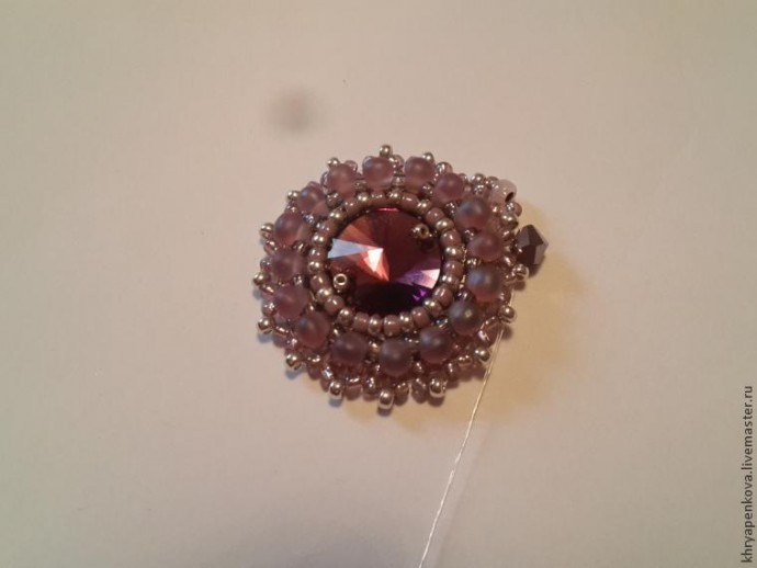 Обшиваем кристалл с лицевой стороны бисером №11 розовым матовым и серебристым металликом, чередуя их друг с другом.