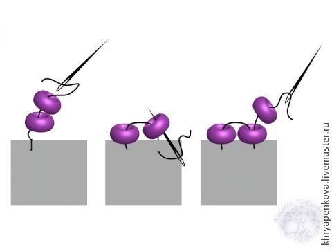 Далее делаем кружевной второй ряд из 3 бисеринок №11: розовый прозрачный — металлик — розовый прозрачный.
