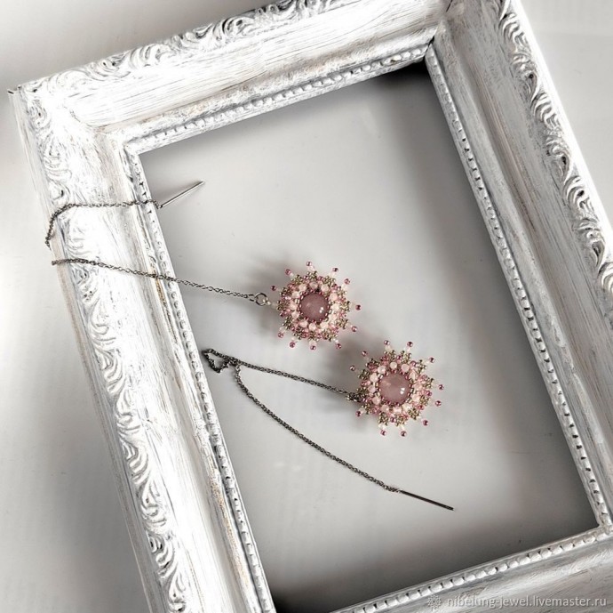 Предлагаю Вашему вниманию мастер-класс по созданию длинных серег из бисера с розовым кварцем. Сразу оговорюсь, что это могут быть не обязательно серьги-продевки, декоративный элемент, который мы сплетем на мастер-классе, может спокойно крепиться к любой застежке швензе, или даже к бейлу.