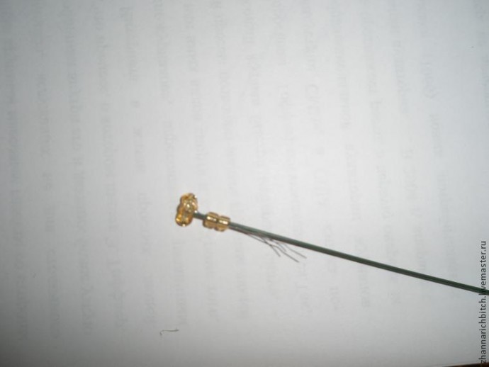 Перекручиваем оставшиеся концы проволоки. Три бисеринки будут составлять вершинку пестика.