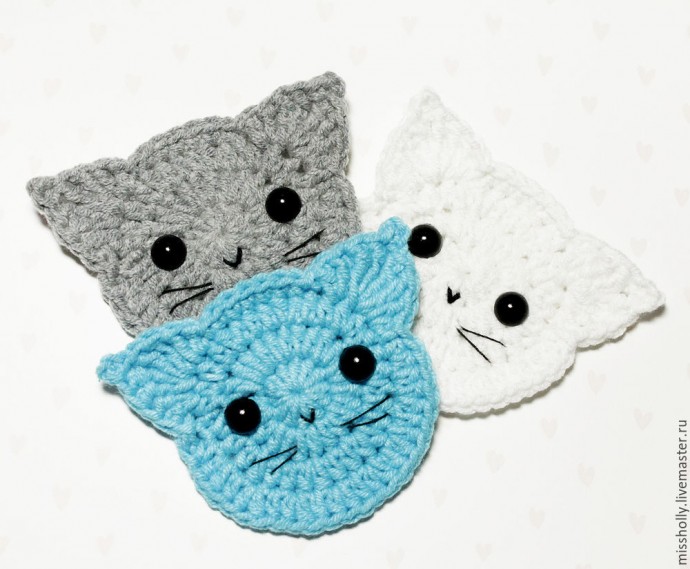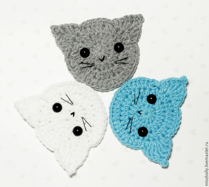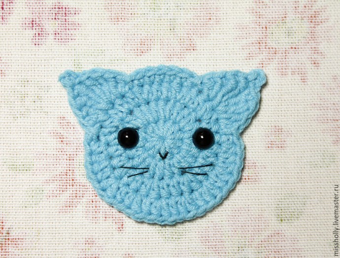 Вяжем крючком простую милую аппликацию "Котик"