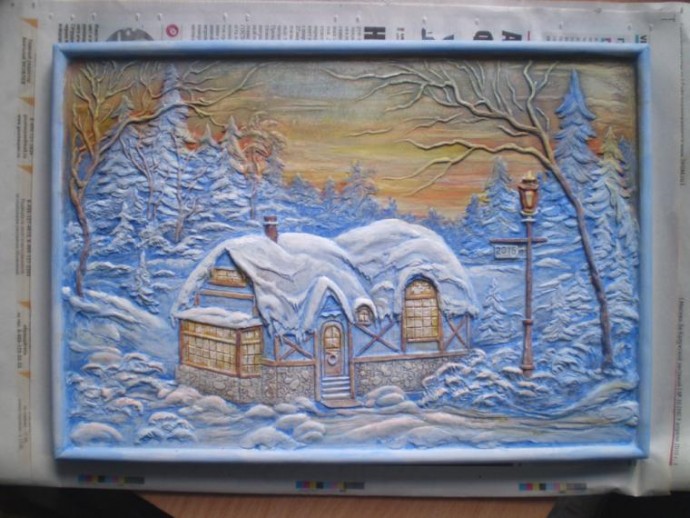 Доводим, растушёвываем, добавляем свет в окнах и отсветы перед окнами на снегу.
