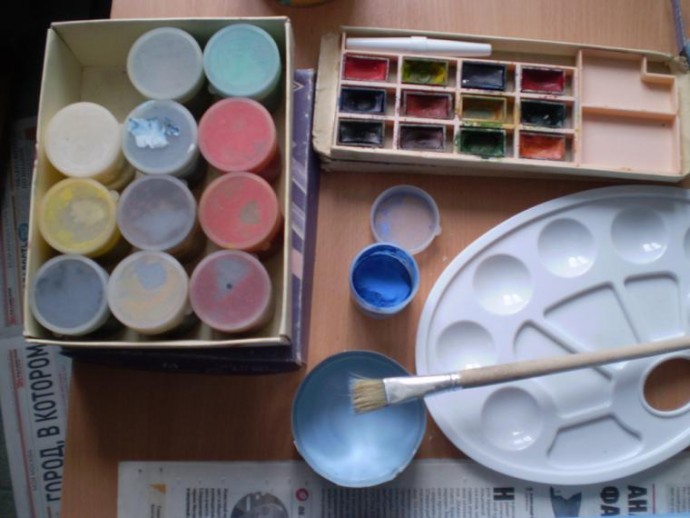 Красим самыми простыми красками — гуашью и акварелью.