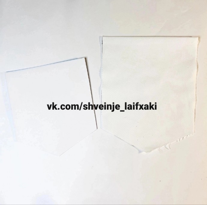 Для разметки припусков на швы и подгибку верхнего среза накладного кармана, для утюжильных работ, я использую специальный шаблон из плотного картона, который можно сделать самостоятельно.