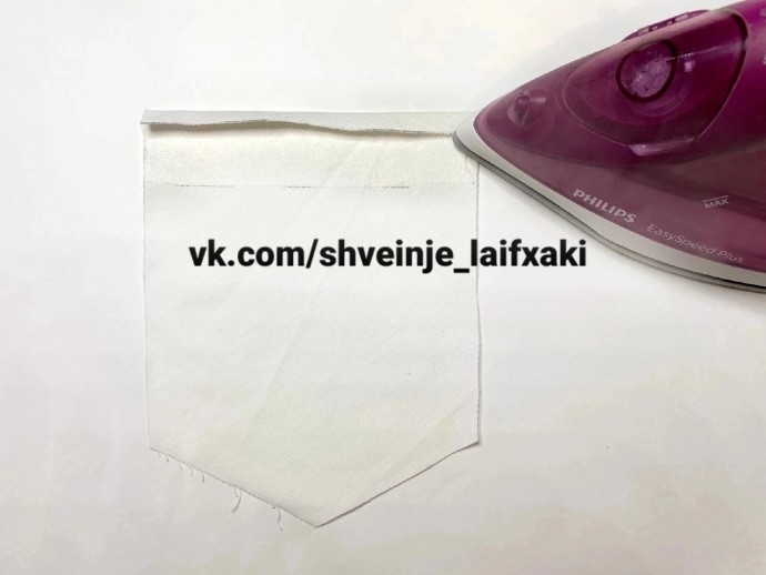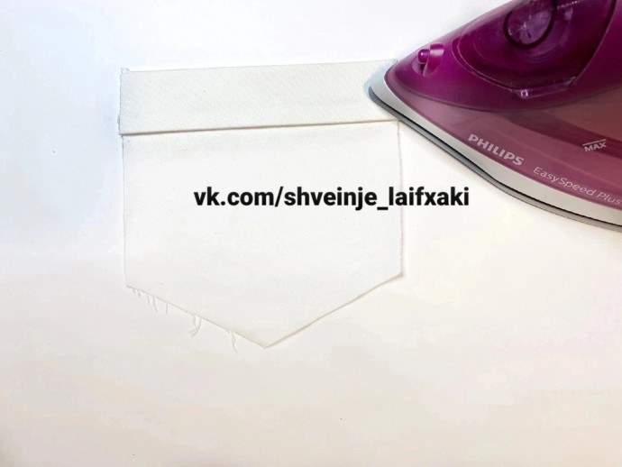 3. Срезы кармана заутюжить на изнаночную сторону на 0,5-0,7см, используя шаблон.