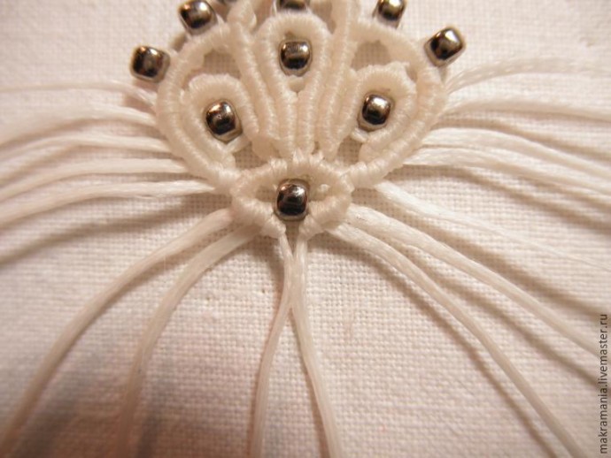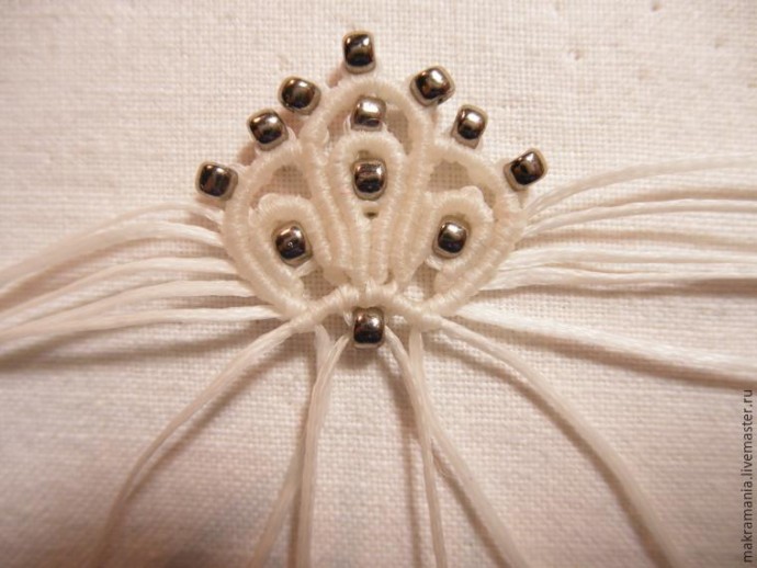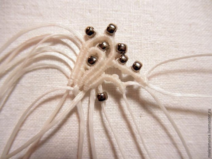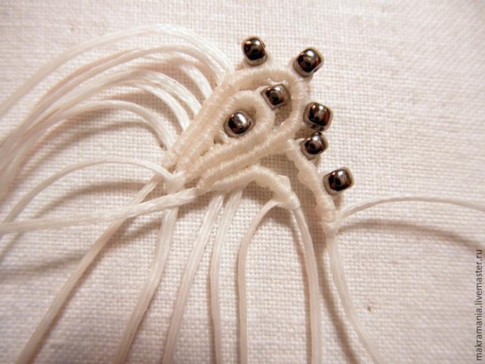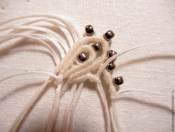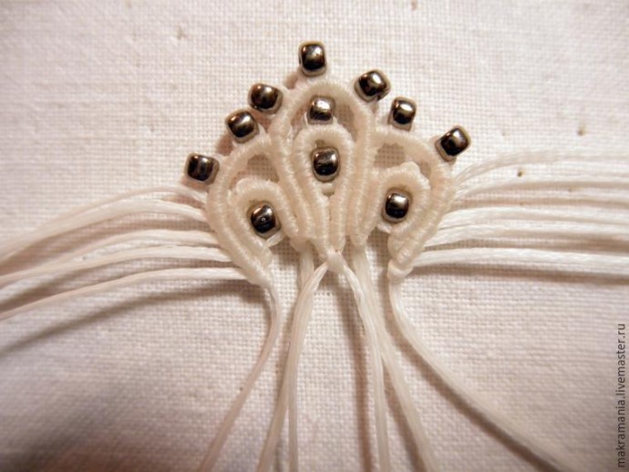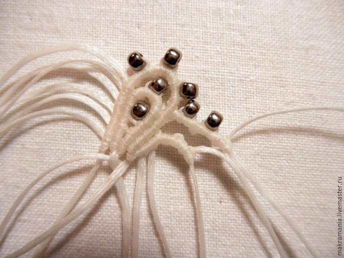 29. На нить, что под аркой, нанизываем бисерину.
