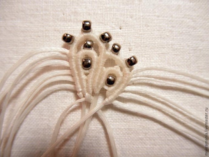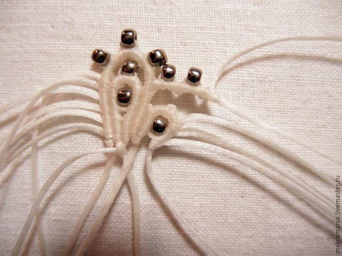 34. На две центральных нити нанизываем бисерину.