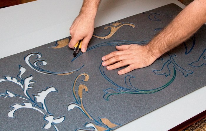 Для объемной отделки стены вам нужно немного свободного времени и терпение, ведь декорирование стен – занятие трудоемкое. Интересным способом объемной отделки стен является нанесение узора по трафарету и его дальнейшее окрашивание. Можно купить готовую массу для создания рельефа или же выполнить его из гипсовой шпаклевки. Трафареты тоже продаются в магазинах, но подходящий удается найти не всегда. Мы покажем, как изготовить трафарет для объемной отделки стены самому. Если вы не художник, поищите идеи для создания узора в образцах обоев